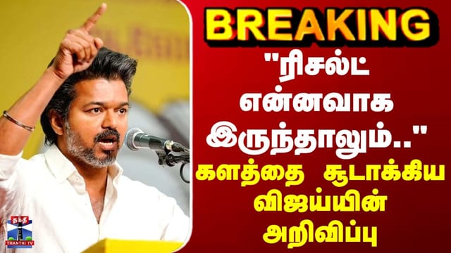 BREAKING || "ரிசல்ட் என்னவாக இருந்தாலும்.." - களத்தை சூடாக்கிய விஜய்யின் அறிவிப்பு தேர்தல் முடிவு என்னவாக இருந்தாலும் மக்களை சந்திப்பேன் - விஜய்/தேர்தல் முடிவு என்னவாக இருந்தாலும் மக்களை சந்திப்பேன் - தவெக தலைவர் விஜய்