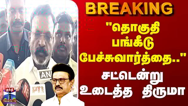 "தொகுதி பங்கீடு பேச்சுவார்த்தை.." - சட்டென்று உடைத்த திருமா #cmstalin #mkstalin #thirumavalavan #vck #thanthitv #tnpolitics #tnelection #thanthitv “தொகுதி பேச்சுவார்த்தைக்காக இன்னும் விசிகவை அழைக்கவில்லை“ தொகுதி பேச்சுவார்த்தைக்காக இன்னும் தங்களை திமுக அழைக்கவில்லை என்றும், அழைக்கும் போது தங்களுக்கான தொகுதிகளை கேட்டுப்பெறுவோம் என்றும் விசிக தலைவர் திருமாவளவன் தெரிவித்துள்ளார்.