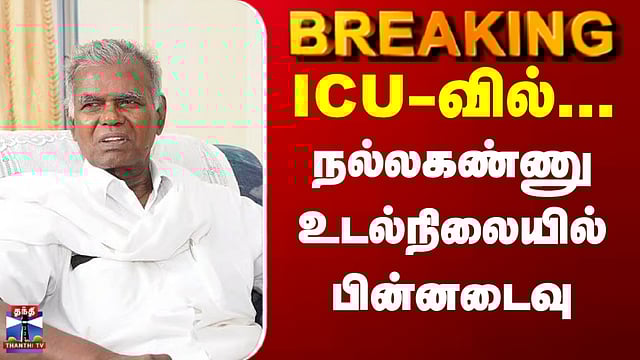இந்திய கம்யூனிஸ்ட் மூத்த தலைவர் நல்லகண்ணு உடல்நிலையில் பின்னடைவு மூச்சுத் திணறல் காரணமாக நல்லகண்ணு சென்னை ராஜீவ் காந்தி மருத்துவமனையில் அனுமதி 20 நாட்களுக்கு மேலாக தீவிர சிகிச்சை பிரிவில் நல்லகண்ணு அனுமதி ICUவில் அனுமதிக்கப்பட்டுள்ள நல்லகண்ணு உடல்நிலையில் பின்னடைவு அவருக்கு மருத்துவர்கள் தீவிர சிகிச்சை அளித்து வருகின்றனர்.