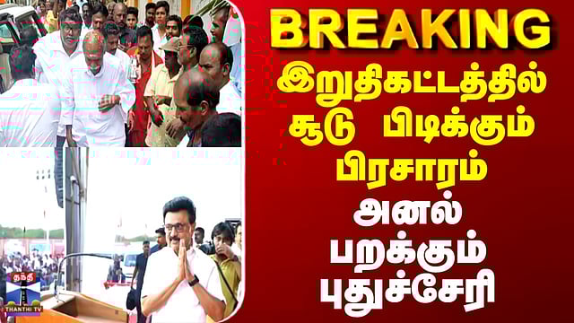 இறுதிகட்டத்தில் சூடு பிடிக்கும் பிரசாரம்.. அனல் பறக்கும் புதுச்சேரி #puducherry #election2026 #politics #campaign #thanthitv புதுச்சேரியில் இன்று மாலை 6 மணியுடன் பிரசாரம் நிறைவு புதுச்சேரியில் இன்று மாலை 6 மணியுடன் தேர்தல் பிரசாரம் நிறைவடைகிறது