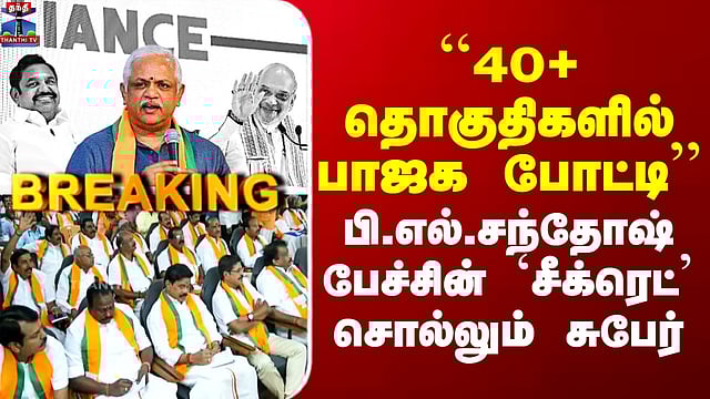 BJP Tamilnadu ``40+ தொகுதிகளில் பாஜக போட்டி’’ - பி.எல்.சந்தோஷ் பேச்சின் `சீக்ரெட்’ சொல்லும் சுபேர் முதல் கட்டத்திலேயே தமிழகத்திற்கு தேர்தல், தயாராக இருங்கள் - பாஜக பாஜக நிர்வாகிகளுக்கு தேசிய அமைப்பு பொதுச்செயலாளர் பி.எல்.சந்தோஷ் அறிவுறுத்தல் இன்னும் 65 நாட்கள் தான் உள்ளது ஏப்ரல் மாதம் தேர்தல் நடைபெற்றாலும் முதல் கட்டத்திலேயே தமிழகத்திற்கு தேர்தல் நடத்தப்பட வாய்ப்புள்ளதால் தேர்தலுக்கு தயாராக இருங்கள் தேசிய ஜனநாயக கூட்டணியின் ஆட்சி அமையும் என்று பாஜக தலைவர்கள் அனைவரிடமும் தெரிவிக்க வேண்டும் - பி.எல்.சந்தோஷ்
