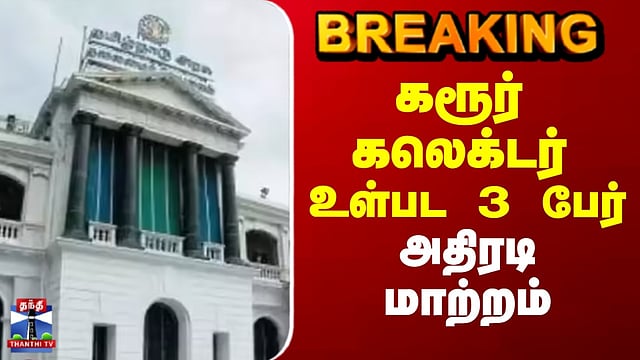 #BREAKING || Collector | கரூர் கலெக்டர் உள்பட 3 பேர் அதிரடி மாற்றம் #tn #collector #tnCollector #thanthitv #transfer #karur தமிழகத்தில் ஐஏஎஸ் அதிகாரிகள் பணியிடமாற்றம் தமிழகத்தில் கரூர் உள்பட 3 மாவட்ட ஆட்சியர்கள் மாற்றம் காஞ்சிபுரம் ஆட்சி தலைவராக இருந்த கலைச்செல்வி மோகன் பொருளியல் இயக்குநராக நியமனம் செங்கல்பட்டு ஆட்சி தலைவராக இருந்த சினேகா, காஞ்சிபுரம் மாவட்ட ஆட்சி தலைவராக நியமனம் திருவள்ளூர் சார் ஆட்சியராக இருந்த ரவிக்குமார், கரூர் மாவட்ட ஆட்சி தலைவராக நியமனம் மொத்தமாக 8 ஐஏஎஸ் அதிகாரிகளுக்கு புதிய பொறுப்பு வழங்கப்பட்டுள்ளது