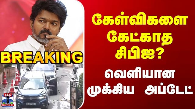 கரூர் கூட்ட நெரிசல் வழக்கில் டெல்லி சிபிஐ தலைமை அலுவலகத்தில் விஜய் ஆஜர்/விஜய் 3வது முறையாக சிபிஐ விசாரணைக்கு ஆஜராகியுள்ளார்/விஜய்யிடம் சிபிஐ அதிகாரிகள் இன்னும் கேள்விகளை கேட்க தொடங்கவில்லை என தகவல்/விசாரணைக்கு ஆஜராகி ஒருமணி நேரத்திற்கு மேலாக விஜய் வெறுமனே உட்கார வைக்கப்பட்டுள்ளதாக தகவல்/விஜய்யிடம் கையெழுத்து வாங்கி கொண்டு உட்கார வைக்கப்பட்டுள்ளதாக தகவல்