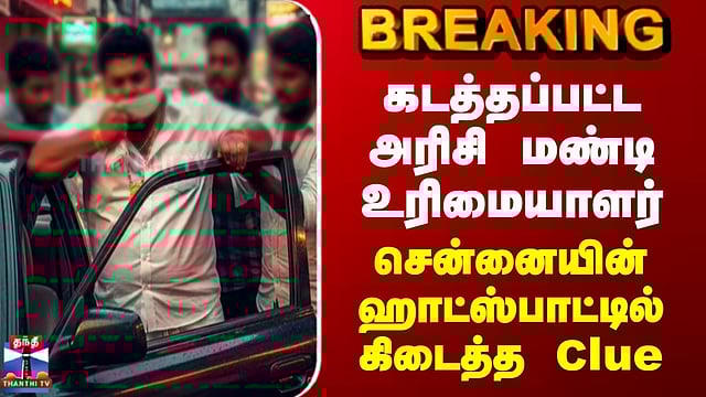 Breaking | Chennai | Kidnap | கடத்தப்பட்ட அரிசி மண்டி உரிமையாளர் | சென்னையின் ஹாட்ஸ்பாட்டில் கிடைத்த Clue #chennai #kidnap #crime #thanthitv சென்னையில் அரிசி மண்டி உரிமையாளர் கடத்தல் சென்னை கொத்தவால்சாவடியில் அரிசி மண்டி உரிமையாளரான ஆனந்தகுமார் என்பவர் கடத்தல்/நேற்றிரவு அரிசி மண்டியை மூடிவிட்டு செல்லும் போது கடத்தப்பட்டதாக தகவல்/ஆனந்தகுமார் உறவினர் ஒருவருக்கு போன் செய்து தான் கடத்தப்பட்டதாக கூறி ரூ.2 லட்சம் கேட்டு தொடர்பை துண்டித்துள்ளார்/எதற்காக கடத்தப்பட்டார்?, யார் கடத்தினார்கள்? என சிசிடிவி காட்சிகளை வைத்து கொத்தவால்சாவடி போலீசார் விசாரணை