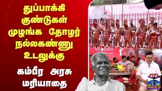 துப்பாக்கி குண்டுகள் முழங்க தோழர் நல்லகண்ணு உடலுக்கு கம்பீர அரசு மரியாதை