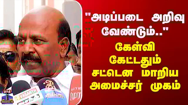 "அதுக்கெல்லாம் அடிப்படை அறிவு வேண்டும்..." - கேள்வி கேட்டதும் சட்டென மாறிய அமைச்சர் முகம் #masubramaniyan #thanthitv "அதுக்கெல்லாம் அடிப்படை அறிவு வேண்டும்..." - அமைச்சர் மா.சுப்பிரமணியன் சென்னையில் செய்தியாளர்களிடம் பேசிய அமைச்சர் மா.சுப்பிரமணியன், சமீபத்தில் திறக்கப்பட்ட எல் ப்ரிட்ஜ் பாலம் குறித்து பாமக தலைவர் அன்புமணி வெளியிட்ட கருத்து குறித்த கேள்விக்கு, எல் ப்ரிட்ஜ் என்பதால், எல் வடிவத்திலா போட முடியும் என்று பதிலளித்தார்.