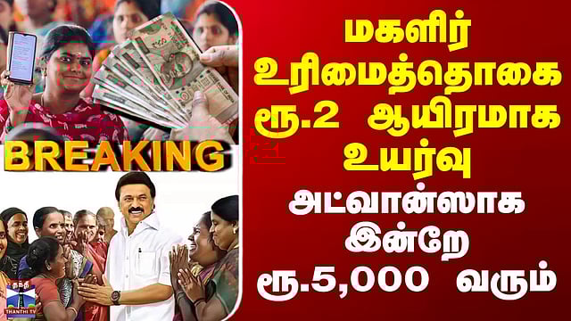 Magalir Urimai Thogai | மகளிர் உரிமைத்தொகை ரூ.2 ஆயிரமாக உயர்வு.. அட்வான்ஸாக இன்றே ரூ.5,000 வரும்