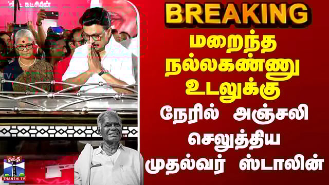 இந்திய கம்யூனிஸ்ட் கட்சியின் மூத்த தலைவர் நல்லகண்ணு உடலுக்கு அஞ்சலி செலுத்துவதற்காக முதலமைச்சர் ஸ்டாலின் வருகை தந்துள்ளார்.. அந்த காட்சிகளை காணலாம்...