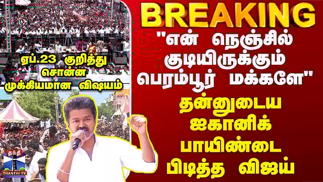 "என் நெஞ்சில் குடியிருக்கும் பெரம்பூர் மக்களே" - தன்னுடைய ஐகானிக் பாயிண்டை பிடித்த விஜய்.. ஏப்.23 குறித்து சொன்ன முக்கிய விஷயம் #perambur #tvkvijay #politics #thanthitv