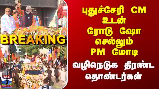 PM Modi Road Show | Puducherry | புதுச்சேரி CM உடன் ரோடு ஷோ செல்லும் PM மோடி | வழிநெடுக திரண்ட தொண்டர்கள் #PMModi #RoadShow #puducherry #election2026 #thanthitv