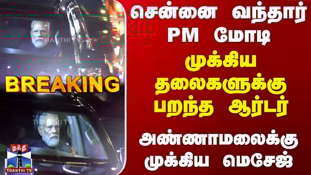 PM Modi | BJP | சென்னை வந்தார் PM மோடி.. முக்கிய தலைகளுக்கு பறந்த மெசேஜ் #PMModi #BJP #TNPolitics #TNElection சென்னை வந்தார் பிரதமர் மோடி/புதுச்சேரி ரோடுஷோ முடிந்து சென்னை வந்தார் பிரதமர் மோடி/புதுச்சேரியில் தேசிய ஜனநாயக கூட்டணி வேட்பாளர்களை ஆதரித்து பிரதமர் ரோடுஷோ நடத்தினார்/புதுச்சேரி ரோடுஷோ நிகழ்ச்சிக்கு பின் சென்னை திரும்பிய பிரதமர் மோடி/சென்னை கிண்டியில் உள்ள தனியார் விடுதியில் தங்குகிறார் பிரதமர் மோடி/இன்றிரவு பாஜகவின் முக்கிய நிர்வாகிகள் பிரதமர் மோடியை சந்திக்கின்றனர்/நாளை காலை 11 மணிக்கு பாஜக நிர்வாகிகளுடன் பிரதமர் மோடி ஆலோசனை