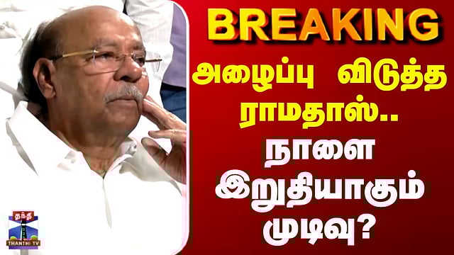 அழைப்பு விடுத்த ராமதாஸ்.. நாளை இறுதியாகும் முடிவு? #pmk #ramadoss #drramadoss #tnpolitics #tnelection #tnpolitics #thanthitv 2026 சட்டமன்ற தேர்தல் - ராமதாஸ் முன்பு உள்ள வாய்ப்புகள் என்ன? பாமக நிறுவனர் ராமதாஸ், தேர்தல் குறித்த நிலைப்பாடு இன்னும் எடுக்காத நிலையில், நாளை தைலாபுரம் தோட்டத்தில் மாவட்ட செயலாளர்கள், வன்னியர் சங்க நிர்வாகிகள் ஆலோசனை கூட்டத்தை நடத்துகிறார்... இது குறித்த கூடுதல் தகவல்களை செய்தியாளர் சங்கரன் வழங்கிட கேட்கலாம்....