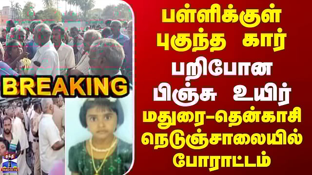 பள்ளிக்குள் புகுந்த கார்..பறிபோன பிஞ்சு உயிர் - மதுரை தென்காசி வெடித்த நெடுஞ்சாலையில் போராட்டம்