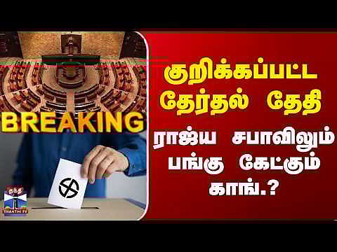 Breaking | Rajya Sabha | Tamilnadu | குறிக்கப்பட்ட தேர்தல் தேதி | ராஜ்ய சபாவிலும் பங்கு கேட்கும் காங்.? #rajyasabha #tnelection2026 #TNcongress #Tnelection #tnpolitics #thanthitv 6 மாநிலங்களவை இடங்களுக்கு மார்ச் 16ம் தேதி தேர்தல் தமிழ்நாட்டில் காலியாக உள்ள 6 மாநிலங்களவை இடங்களுக்கு மார்ச் 16ம் தேதி தேர்தல் /திமுக எம்பிக்கள் திருச்சி சிவா, என்.ஆர்.இளங்கோ, கனிமொழி சோமு, செல்வராஜ் பதவிக்காலம் நிறைவு /அதிமுக எம்பி தம்பிதுரை, தமிழ் மாநில காங்கிரஸ் தலைவர் ஜி.கே.வாசன் பதவிக்காலமும் நிறைவு /6 மாநிலங்களவை இடங்களுக்கு மார்ச் 16ம் தேதி தேர்தல் நடைபெறும் என தேர்தல் ஆணையம் அறிவிப்பு/தமிழ்நாட்டில் காலியாக உள்ள 6 மாநிலங்களவை இடங்களுக்கு சட்டமன்ற தேர்தலுக்கு முன் தேர்தல் நடைபெறுகிறது/வேட்பு மனு தாக்கல் வரும் 26ம் தேதி தொடங்கும் என தேர்தல் ஆணையம் அறிவிப்பு