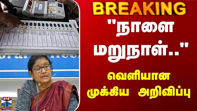 | TN Election 2026 | #tnelection2026 #tamilnaduelection2026 #tnassemblyelection2026 #tamilnaduelection #tnelection #tnassemblyelection #assemblyelection #electioncommission #election2026 #electionswiththanthitv #thanthitv #therthalthiruvizha ECI | TN Election | Politics | "நாளை மறுநாள்.." வெளியான முக்கிய அறிவிப்பு #ECI #Tamilnadu #Politics #TNElection நாளை மறுநாள் வேட்பாளர் பெயர், சின்னம் பொருத்தும் பணி/மின்னணு வாக்குப்பதிவு இயந்திரத்தில் நாளை மறுநாள் வேட்பாளரின் பெயர், சின்னம் பொருத்தும் பணி/"வேட்பாளரின் பெயர், சின்னம் பொருத்தும் பணி 16ம் தேதி நடைபெறும்"/தமிழக தலைமை தேர்தல் அதிகாரி அர்ச்சனா பட்நாயக் அறிவிப்பு/வரும் 23ம் தேதி தமிழகத்தில் ஒரே கட்டமாக தேர்தல் நடக்கிறது