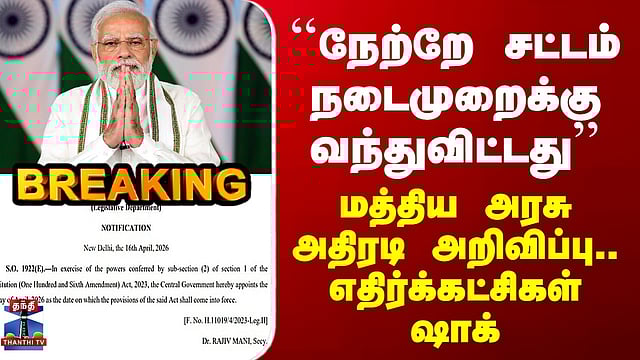 #womensreservationact #parliament #centralgovernment #thanthitv மகளிர் இட ஒதுக்கீடு சட்டம் அமல் - அரசிதழ் வெளியீடு மகளிர் இட ஒதுக்கீடு சட்டம் நேற்று முதல் நடைமுறைக்கு வந்ததாக மத்திய அரசு அரசிதழ் வெளியீடு நாடாளுமன்றம், சட்டமன்றங்களில் பெண்களுக்கு 33% இட ஒதுக்கீடு வழங்கும் சட்டம் - அரசிதழ் வெளியீடு "2023ல் நிறைவேற்றப்பட்ட 'நாரி சக்தி வந்தன் அதினியம்' சட்டம் நேற்று முதல் நடைமுறைக்கு வந்தது"