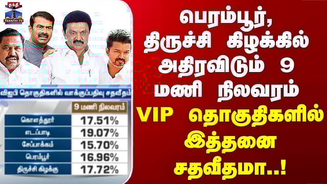 பெரம்பூர், திருச்சி கிழக்கில் அதிரவிடும் 9 மணி நிலவரம் - VIP தொகுதிகளில் இத்தனை சதவீதமா..!
