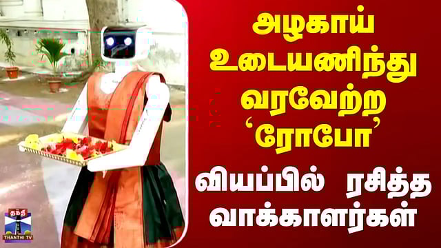 TN Election 2026 | அழகாய் உடையணிந்து வரவேற்ற `ரோபோ’.. வியப்பில் ரசித்த வாக்காளர்கள்