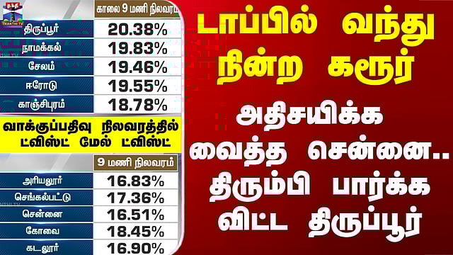 TN Election 2026 | டாப்பில் வந்த கரூர்.. அதிசயிக்க வைத்த சென்னை.. திரும்பி பார்க்க விட்ட திருப்பூர்