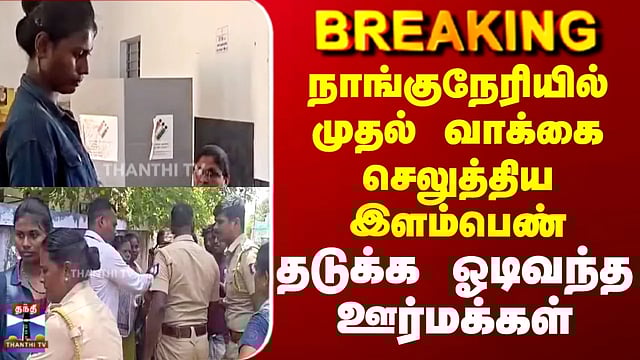 நாங்குநேரியில் முதல் வாக்கை செலுத்திய இளம்பெண்.. தடுக்க ஓடிவந்த ஊர்மக்கள்