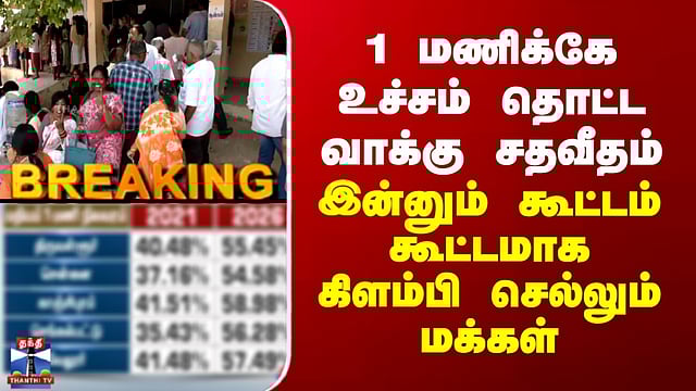 TN Election 2026 | 1 மணிக்கே உச்சம் தொட்ட வாக்கு சதவீதம்.. இன்னும் கூட்டம் கூட்டமாக கிளம்பி செல்லும் மக்கள்