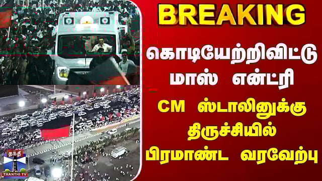 Trichy | CM Stalin | கொடியேற்றிவிட்டு மாஸ் என்ட்ரி | CM ஸ்டாலினுக்கு திருச்சியில் பிரமாண்ட வரவேற்பு