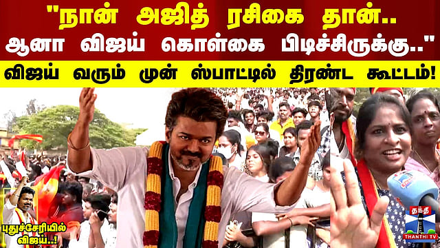 "நான் அஜித் ரசிகை தான்.. ஆனா விஜய் கொள்கை பிடிச்சிருக்கு.." விஜய் வரும் முன் ஸ்பாட்டில் திரண்ட கூட்டம்!