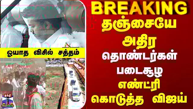 TVK Vijay | Thanjavur | தஞ்சையே அதிர.. தொண்டர்கள் படைசூழ.. எண்ட்ரி கொடுத்த விஜய்