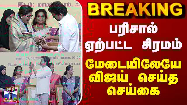 TVK Vijay | பரிசால் ஏற்பட்ட சிரமம்.. மேடையிலேயே விஜய் செய்த செய்கை