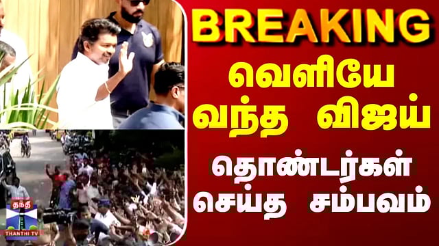 விஜய் இல்லத்தின் முன் குவிந்துள்ள தவெக தொண்டர்கள் தமிழக வெற்றிக் கழக தலைவர் விஜய், திருவள்ளூர் மற்றும் சென்னையில் ரோடு ஷோவில் ஈடுபடும் நிலையில், நீலாங்கரையில் உள்ள அவரது இல்லத்தின் முன் தொண்டர்கள் குவிந்துள்ளனர். அப்போது தவெக தலைவர் விஜய் வெளியே வந்து தொண்டர்களை பார்த்து கையைத்தார்...