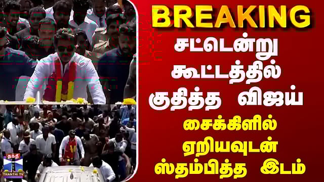 சட்டென்று கூட்டத்தில் குதித்த விஜய்.. சைக்கிளில் ஏறியவுடன் ஸ்தம்பித்த இடம் #tvkvijay #tvk #tvkcampaign #tnpolitics #tnelection #thanthitv