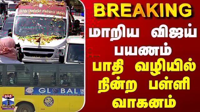 மாறிய விஜய் பயணம்.. பாதி வழியில் நின்ற பள்ளி வாகனம் #tvk #tvkvijay #tvkcampaign #tnpolitics #tnelection #thanthitv விஜய் வருகையையொட்டி காரைக்குடியில் போக்குவரத்து மாற்றம் காரைக்குடியில் தவெக தலைவர் விஜய் இன்னும் சற்று நேரத்தில் பிரசாரம் செய்ய உள்ள நிலையில், ஒரு மணி நேரத்திற்கு முன்பாகவே வழித்தடம் மாற்றப்பட்டதால் பயணிகள் கடும் அவதி