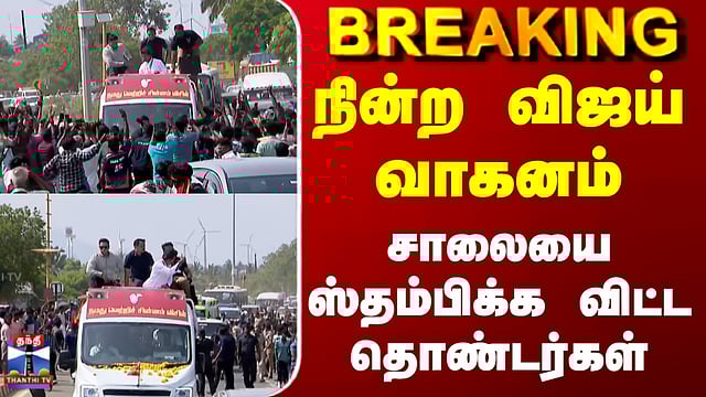 நின்ற விஜய் வாகனம்.. சாலையை ஸ்தம்பிக்க விட்ட தொண்டர்கள் #tvkvijay #tvk #tnelection2026 #campaign #politics #thanthitv கன்னியாகுமரியில் த.வெ.க தலைவர் விஜய் ரோடுஷோ த.வெ.க தலைவர் விஜய், சற்றுநேரத்தில் கன்னியாகுமரியில் ரோடுஷோ செல்லும் நிலையில், வழியில் அவருக்கு பொதுமக்கள் வரவேற்பு அளித்த காட்சிகளை பார்க்கலாம்....