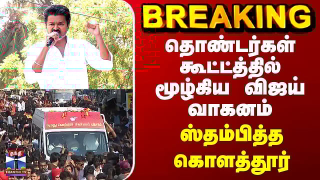 தொண்டர்கள் கூட்ட்த்தில் மூழ்கிய விஜய் வாகனம்.. ஸ்தம்பித்த கொளத்தூர் #tvkvijaycampaignlive #tvkvijay #vijay #tvk #tnpolitics #tnelection2026 #thanthitv தவெக வேட்பாளர் பாபுவை ஆதரித்து விஜய் பிரசாரம் சென்னை கொளத்தூர் அடுத்த பெரவள்ளூர் சந்திப்பு பகுதியில் தவெக தலைவர் விஜய் பிரசாரம் மேற்கொண்டு வருகிறார்... அதனை காணலாம்...