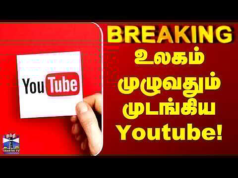 உலகம் முழுவதும் முடங்கிய Youtube! - ஸ்தம்பித்த பயனர்கள் #youtube #socialmedia #video #thanthitv உலகம் முழுவதும் youtube சேவை பாதிப்பு உலகம் முழுவதும் சிலருக்கு youtube சேவை பாதிப்பு. பல பயனர்கள் youtube பக்கத்தை பார்வையிட முடியாத நிலை உள்ளது. பிரச்சினையை சரி செய்ய முயன்று வருவதாக youtube நிறுவனம் தகவல்