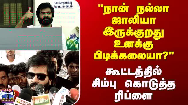 "நான் நல்லா ஜாலியா இருக்குறது உனக்கு பிடிக்கலையா?" - கூட்டத்தில் சிம்பு கொடுத்த ரிப்ளை #tnelection2026 #election2026 #silambarasantr #thanthitv “ஏம்மா...நான் நல்லா ஜாலியா இருக்குறது உனக்குப் பிடிக்கலையா?“ சென்னை தியாகராய நகரில் வாக்களித்த பிறகு செய்தியாளர்களைச் சந்தித்த நடிகர் சிம்புவிடம் நீங்கள் அரசியலுக்கு எப்போது வருவீர்கள் என செய்தியாளர்கள் கேட்ட கேள்விக்கு அவர் அளித்த பதிலை பார்க்கலாம்..