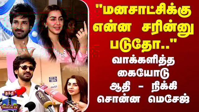 TN Election 2026 | "மனசாட்சிக்கு என்ன சரின்னு படுதோ.." வாக்களித்த கையோடு ஆதி - நிக்கி சொன்ன மெசேஜ்