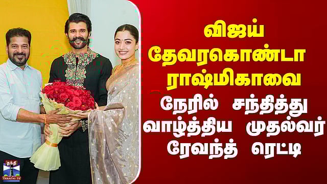 Virosh | விஜய் தேவரகொண்டா – ராஷ்மிகாவை நேரில் சந்தித்து வாழ்த்திய முதல்வர் ரேவந்த் ரெட்டி #virosh #vijaydevarakonda #rashmikamandanna தெலங்கானா மாநில முதல்வர் ரேவந்த் ரெட்டி, நட்சத்திர தம்பதிகளான விஜய் தேவரகொண்டா மற்றும் ராஷ்மிகா மந்தனாவுக்கு வாழ்த்து தெரிவித்தார். புதுமணத் தம்பதியான இருவரையும், அவர்களது இல்லத்திற்கே நேரில் சென்று ரேவந்த் ரெட்டி மலர்கொத்து கொடுத்து வாழ்த்தினார். இந்த சந்திப்பின்போது இருவீட்டாரும் உடனிருந்தனர். மணமக்களிடம் முதல்வர் ரேவந்த் ரெட்டி சிறிது நேரம் கலந்துரையாடியதாகவும் தகவல் வெளியாகியுள்ளது.