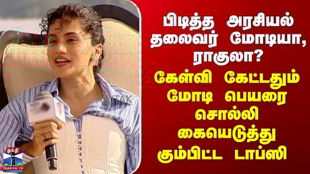 பிடித்த அரசியல் தலைவர் மோடியா, ராகுலா? - கேள்வி கேட்டதும் மோடி பெயரை சொல்லி கையெடுத்து கும்பிட்ட டாப்ஸி #Taapsee #pmmodi #rahulgandhi #thanthitv Taapsee |பிடித்த அரசியல் தலைவர் யார்?-கேள்வி கேட்டதும் மோடி பெயரை சொல்லி கையெடுத்து கும்பிட்ட டாப்ஸி