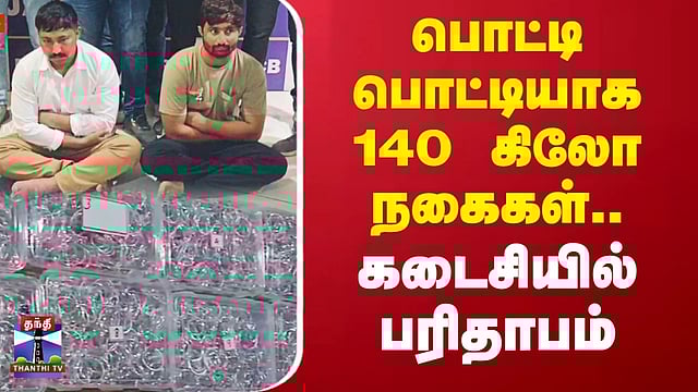 பொட்டி பொட்டியாக 140 கிலோ நகைகள்.. கடைசியில் பரிதாபம் #Silver #theft #Gujarat #thanthitv 140 கிலோ வெள்ளி திருட்டு வழக்கு - 2 பேர் கைது குஜராத் மாநிலத்தின் ராஜ்கோட்டில் 140 கிலோ வெள்ளி திருட்டு வழக்கில் இரண்டு பேரை போலீசார் கைது செய்தனர். திருட்டு சம்பவம் குறித்து ராஜ்கோட் காவல் ஆணையர் ஜக்தீஷ் பாங்கர்வா வழக்கு தொடர்பான விவரங்களை வெளியிட்டார். விசாரணையின் அடிப்படையில் இருவரை கைது செய்த போலீசார் அவர்களிடம் இருந்த வெள்ளி பொருட்களை பறிமுதல் செய்தனர்.