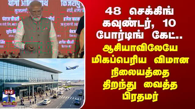 48 செக்கிங் கவுண்டர், 10 போர்டிங் கேட்.. ஆசியாவிலேயே மிகப்பெரிய விமான நிலையம் - திறந்து வைத்த பிரதமர் #pmmodi #airport #thanthitv உத்தரப் பிரதேச மாநிலம் ஜேவாரில் அமைந்துள்ள நொய்டா சர்வதேச விமான நிலையத்தின் முதற்கட்டத்தை பிரதமர் நரேந்திர மோடி திறந்து வைத்தார்... அந்தக் காட்சிகளை பார்க்கலாம்...