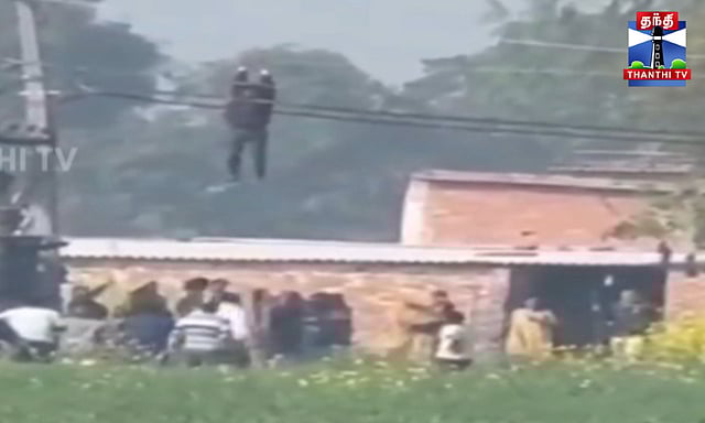 உத்தரபிரதேச மாநிலம் பிரதாப்கரில் காதலியை திருமணம் செய்து வைக்க வலியுறுத்தி உயர் அழுத்த மின் கம்பியை பிடித்து தொங்கிய 15 வயது சிறுவனால் பரபரப்பு ஏற்பட்டது.