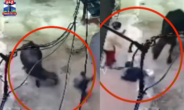 பள்ளி முடிந்து வீடு திரும்பிய சிறுவனை துரத்தி முட்டிய மாடு- பரபரப்பு