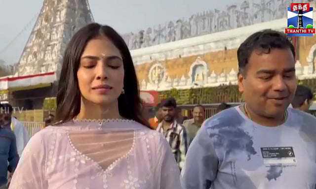 திருப்பதி ஏழுமலையான் கோவிலில், நடிகை மாளவிகா மோகன் சுவாமி தரிசனம் செய்தார். விஐபி தரிசனம் மூலம் கோவிலுக்குள் சென்ற அவர், பக்தியுடன் ஏழுமலையானை வழிபட்டார். தரிசனத்திற்குப் பிறகு கோவில் வளாகத்தில் உள்ள ஸ்ரீ ரங்கநாயக்க மண்டபத்தில், அவருக்கு வேத ஆசீர்வாதங்கள் முழங்க பிரசாதங்கள் வழங்கப்பட்டன. பின்னர் கோவிலுக்கு வெளியே செய்தியாளர்களிடம் பேசிய அவர், முதல் முறையாக திருப்பதிக்கு வந்துள்ளதாகவும், தற்போது நடிகர்கள் விஜய் சேதுபதி மற்றும் கார்த்தியுடன் நடித்து வருவதாகவும் தெரிவித்தார்.