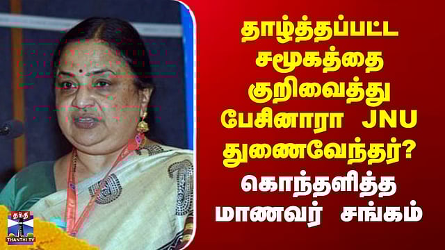 Delhi | தாழ்த்தப்பட்ட சமூகத்தை குறிவைத்து பேசினாரா ஜே.என்.யு துணைவேந்தர்? - கொந்தளித்த மாணவர் சங்கம் #delhi #jnu #thanthitv டெல்லி ஜவஹர்லால் நேரு பல்கலைக்கழக துணைவேந்தர், சாந்திஸ்ரீ துலிப்புடி(Shantisree Dhulipudi Pandit) வெளியிட்ட கருத்து சர்ச்சையை கிளப்பிய நிலையில், துணைவேந்தர் ராஜினாமா செய்ய வேண்டும் என, மாணவர் சங்கம் எதிர்ப்பு தினமாகக் அனுசரித்துள்ளது. கடந்த பிப்ரவரி 16-ம் தேதி வெளியான பாட்காஸ்ட் நிகழ்ச்சியில் பேசிய பல்கலைகழக துணைவேந்தர், நிரந்தரமாகப் பாதிக்கப்பட்டவராக இருப்பதன் மூலமோ, விக்டிம் கார்டு விளையாடுவதாலோ, ஒருவர் முன்னேற முடியாது என கருத்து தெரிவித்ததாக கூறப்படுகிறது. இந்த கருத்து தாழ்த்தப்பட்ட சமூகத்தை குறிவைத்து பேசியதாக, ஜே.என்.யு மாணவர் சங்கம் குற்றம் சாட்டியுள்ளது.