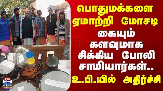 #Uttarpradesh | #Police | #NationalNews | #ThanthiTV Uttarpradesh | பொதுமக்களை ஏமாற்றி மோசடி - கையும் களவுமாக சிக்கிய போலி சாமியார்கள்.. உ.பி.யில் அதிர்ச்சி உத்தரப் பிரதேச மாநிலம் முசாஃபர்நகரில், இந்து மத உடை அணிந்து பொதுமக்களை ஏமாற்றி வந்த போலி சாமியார்கள் 6 பேரை போலீசார் கைது செய்துள்ளனர். சாமியார்கள் போல் நடித்து, மக்களிடம் பணம் மற்றும் சொத்துகளை பறித்துள்ளனர். இது குறித்து உத்தரபிரதேச போலீசார் தீவிர விசாரணை மேற்கொண்டு வருகின்றனர்.