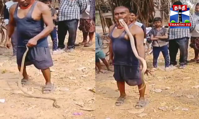 ஒடிசா மாநிலம் பாலசோரில் விபரீதம் தெரியமால் கொடிய விஷ பாம்பை வாயில் கவ்வி விளையாடியவரை பொதுமக்கள் மிரட்சியுடன் பார்த்தனர்...
