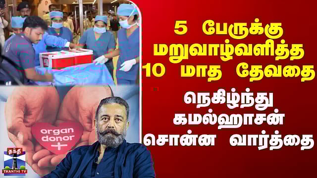 5 பேருக்கு புத்துயிர் தந்த 10 மாத குழந்தை-கமல்ஹாசன் பாராட்டு கேரளாவில் நிகழ்ந்த சாலை விபத்தில் உயிரிழந்த 10 மாத குழந்தையின் உடலுறுப்புகள் தானமாக வழங்கப்பட்டு, 5 பேருக்கு புதிய வாழ்க்கை கிடைத்துள்ள சம்பவம் நெகிழ்ச்சியை ஏற்படுத்தியுள்ள நிலையில், அக்குழந்தையின் பெற்றோரை நடிகரும் மக்கள் நீதி மய்யம் கட்சி தலைவருமான கமல்ஹாசன் பாராட்டியுள்ளார்.