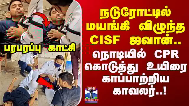 நடுரோட்டில் மயங்கி விழுந்த ஜவான்.. நொடியில் CPR கொடுத்து உயிரை காப்பாற்றிய காவலர்