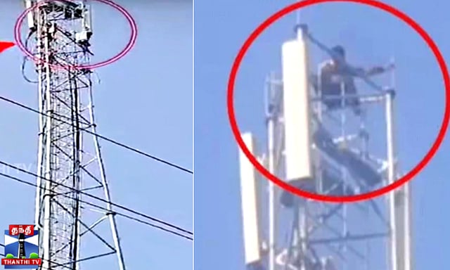 செல்போன் டவரில் ஏறி போராடியவர் கால் தவறி கீழே விழுந்து பலி